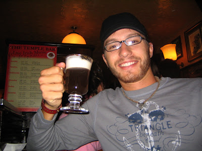 My first true Irish Coffee. It was delicious. Strong black coffee, irish whiskey, brown sugar, and fresh whipped cream. A great pick-me-up on my first, jeg-lagged, night in Dublin at the Temple Bar.